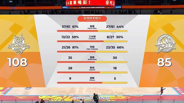 两队在第四节就不防守了,在进攻端可谓火力全开,打得那叫一个痛快。吉林队单节轰出28-26,愣是追回了2分。最终,山东男篮主场以108-85大胜吉林队23分。凭借此役取胜,山东男篮斩获了一波7连胜,战绩变成9胜4负,排名反超辽宁,来到了第8位。