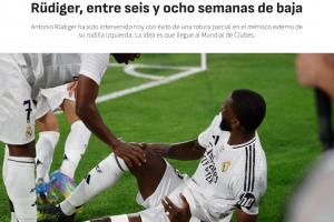 华体会登录-阿斯:皇马计划让吕迪格及时复出踢世俱杯,从现在起他缺阵6-8周