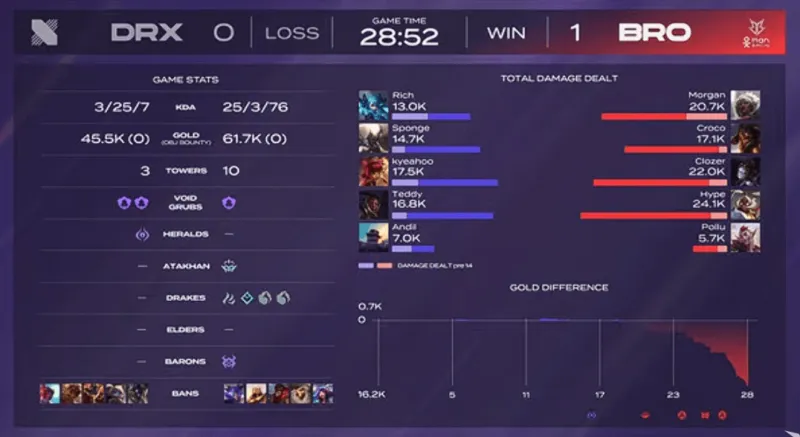 华体会体育-DRX 0-1 BRO:前期团战轻松碾压,BRO首局轻松横扫DRX